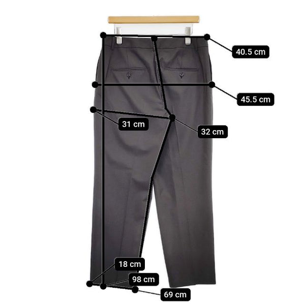 総丈:約98cm ウエスト:約40.5cm 股上:約32cm 股下:約69cm ヒップ:約45.5cm ワタリ幅:約31cm 裾幅:約18cm ※採寸画像がある商品はハンガーに吊るした状態での計測のため、平置きでの採寸とは差が生じる場合がございます。平置きでの実寸サイズをご希望の場合は、ご購入前に必ずご質問ください。
