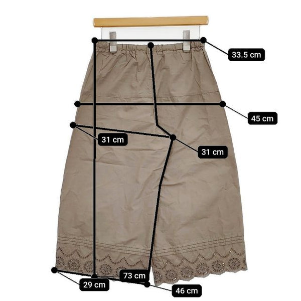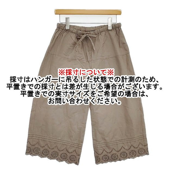 総丈:約73cm ウエスト:約33.5cm ウエスト最長:約50cm 股上:約31cm 股下:約46cm ヒップ:約45cm ワタリ幅:約31cm 裾幅:約29cm ※採寸画像がある商品はハンガーに吊るした状態での計測のため、平置きでの採寸とは差が生じる場合がございます。平置きでの実寸サイズをご希望の場合は、ご購入前に必ずご質問ください。