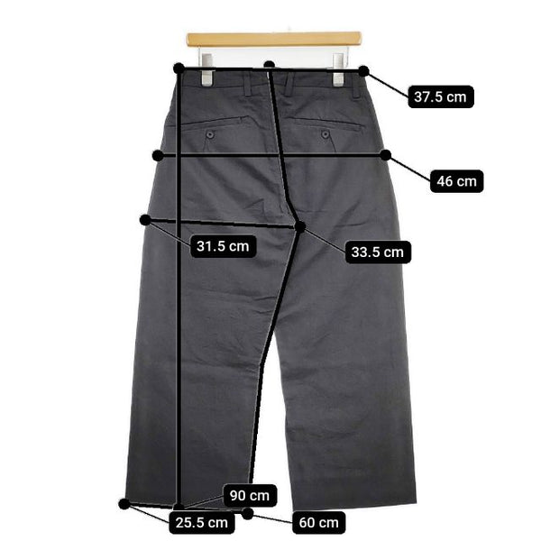 総丈:約90cm ウエスト:約37.5cm 股上:約33.5cm 股下:約60cm ヒップ:約46cm ワタリ幅:約31.5cm 裾幅:約25.5cm ※採寸画像がある商品はハンガーに吊るした状態での計測のため、平置きでの採寸とは差が生じる場合がございます。平置きでの実寸サイズをご希望の場合は、ご購入前に必ずご質問ください。