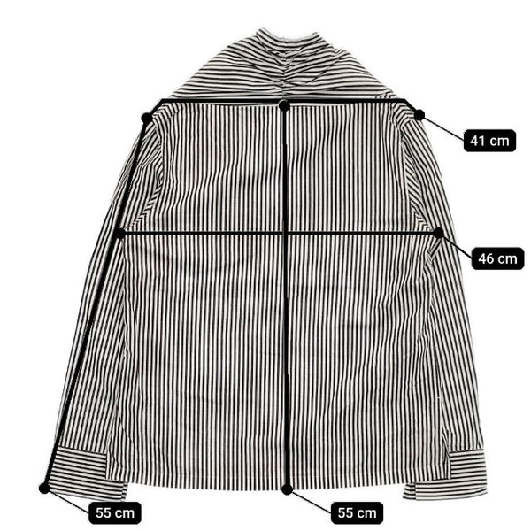 肩幅:約41cm 着丈:約55cm 身幅:約46cm 袖丈:約55cm ※採寸画像がある商品はハンガーに吊るした状態での計測のため、平置きでの採寸とは差が生じる場合がございます。平置きでの実寸サイズをご希望の場合は、ご購入前に必ずご質問ください。