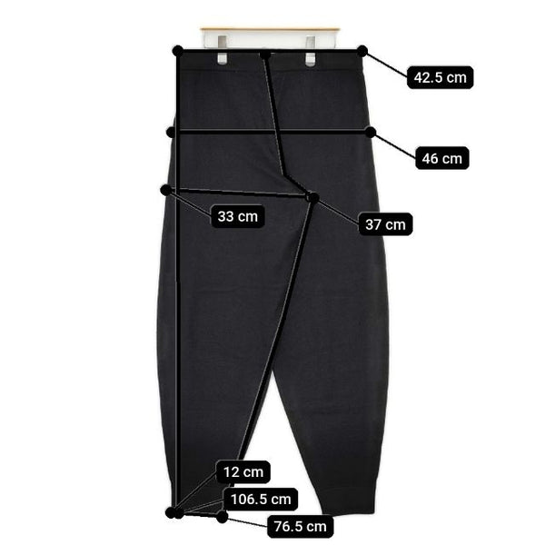 総丈:約106.5cm ウエスト:約42.5cm ウエスト最長:約60cm 股上:約37cm 股下:約76.5cm ヒップ:約46cm ワタリ幅:約33cm 裾幅:約12cm ※採寸画像がある商品はハンガーに吊るした状態での計測のため、平置きでの採寸とは差が生じる場合がございます。平置きでの実寸サイズをご希望の場合は、ご購入前に必ずご質問ください。