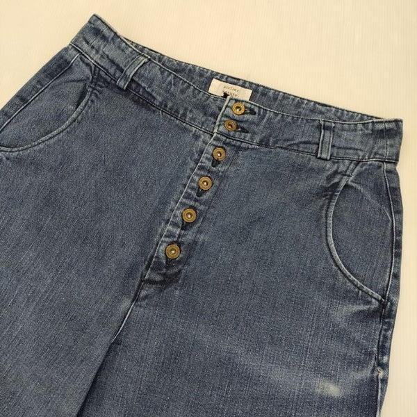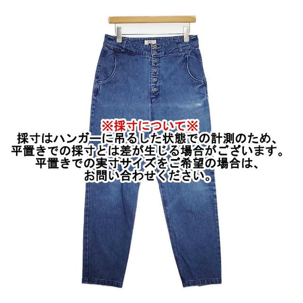 総丈:約103cm ウエスト:約38cm 股上:約38cm 股下:約69cm ヒップ:約45cm ワタリ幅:約30cm 裾幅:約16cm ※採寸画像がある商品はハンガーに吊るした状態での計測のため、平置きでの採寸とは差が生じる場合がございます。平置きでの実寸サイズをご希望の場合は、ご購入前に必ずご質問ください。