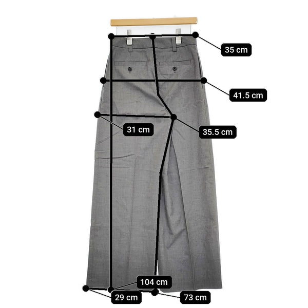 総丈:約104cm ウエスト:約35cm 股上:約35.5cm 股下:約73cm ヒップ:約41.5cm ワタリ幅:約31cm 裾幅:約29cm ※採寸画像がある商品はハンガーに吊るした状態での計測のため、平置きでの採寸とは差が生じる場合がございます。平置きでの実寸サイズをご希望の場合は、ご購入前に必ずご質問ください。
