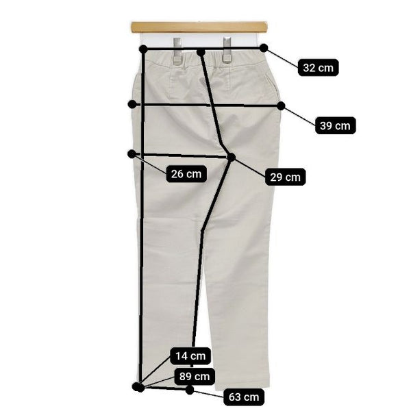 総丈:約89cm ウエスト:約32cm ウエスト最長:約36cm 股上:約29cm 股下:約63cm ヒップ:約39cm ワタリ幅:約26cm 裾幅:約14cm ※採寸画像がある商品はハンガーに吊るした状態での計測のため、平置きでの採寸とは差が生じる場合がございます。平置きでの実寸サイズをご希望の場合は、ご購入前に必ずご質問ください。