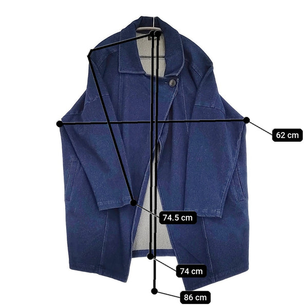 着丈:約74cm 着丈(前):約86cm 身幅:約62cm 裄丈:約74.5cm ※採寸画像がある商品はハンガーに吊るした状態での計測のため、平置きでの採寸とは差が生じる場合がございます。平置きでの実寸サイズをご希望の場合は、ご購入前に必ずご質問ください。