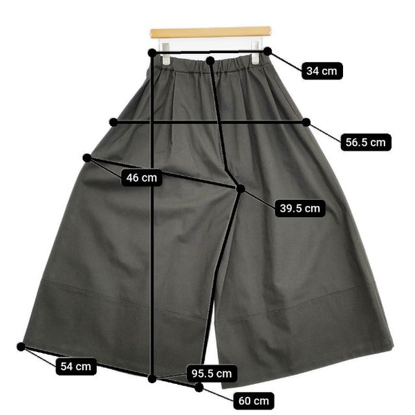 総丈:約95.5cm ウエスト:約34cm ウエスト最長:約42cm 股上:約39.5cm 股下:約60cm ヒップ:約56.5cm ワタリ幅:約46cm 裾幅:約54cm ※採寸画像がある商品はハンガーに吊るした状態での計測のため、平置きでの採寸とは差が生じる場合がございます。平置きでの実寸サイズをご希望の場合は、ご購入前に必ずご質問ください。