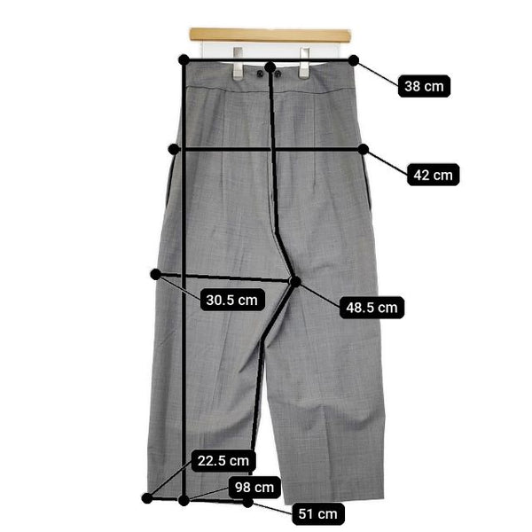 総丈:約98cm ウエスト:約38cm 股上:約48.5cm 股下:約51cm ヒップ:約42cm ワタリ幅:約30.5cm 裾幅:約22.5cm ※採寸画像がある商品はハンガーに吊るした状態での計測のため、平置きでの採寸とは差が生じる場合がございます。平置きでの実寸サイズをご希望の場合は、ご購入前に必ずご質問ください。