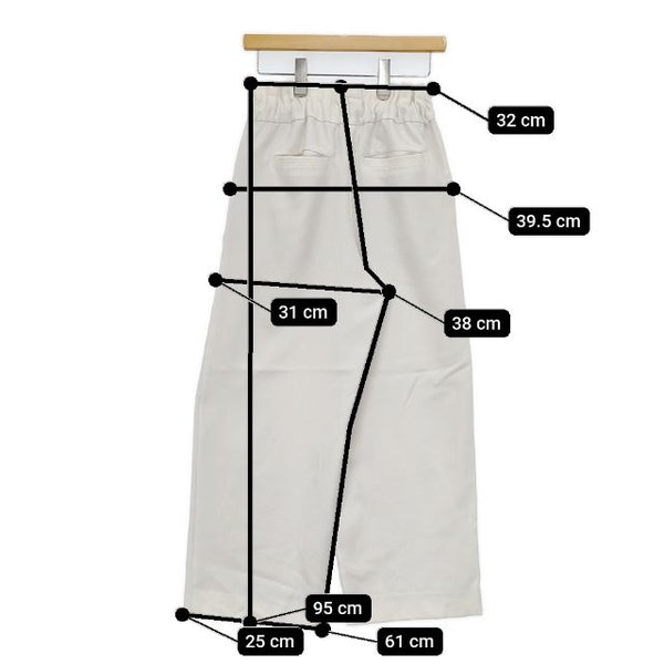 総丈:約95cm ウエスト:約32cm ウエスト最長:約42cm 股上:約38cm 股下:約61cm ヒップ:約39.5cm ワタリ幅:約31cm 裾幅:約25cm ※採寸画像がある商品はハンガーに吊るした状態での計測のため、平置きでの採寸とは差が生じる場合がございます。平置きでの実寸サイズをご希望の場合は、ご購入前に必ずご質問ください。