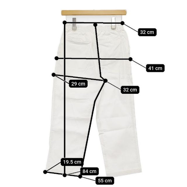 総丈:約84cm ウエスト:約32cm ウエスト最長:約38cm 股上:約32cm 股下:約55cm ヒップ:約41cm ワタリ幅:約29cm 裾幅:約19.5cm ※採寸画像がある商品はハンガーに吊るした状態での計測のため、平置きでの採寸とは差が生じる場合がございます。平置きでの実寸サイズをご希望の場合は、ご購入前に必ずご質問ください。