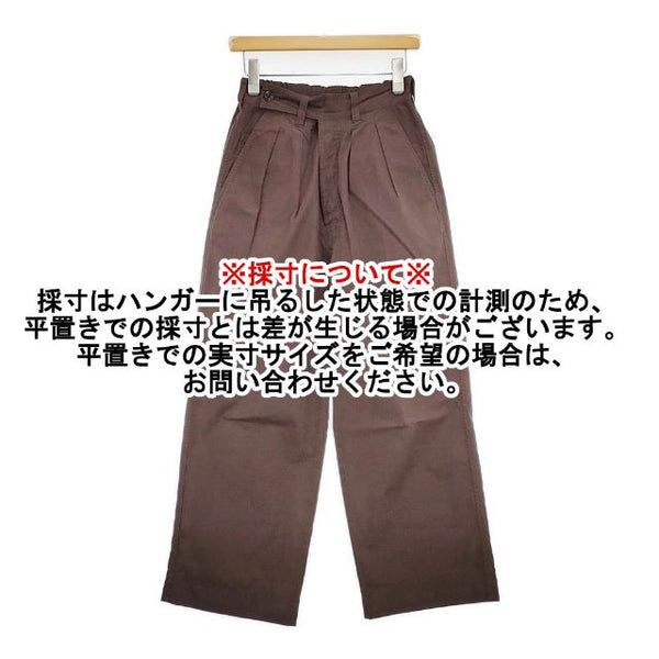 総丈:約100cm ウエスト:約32cm ウエスト最長:約39cm 股上:約41.5cm 股下:約62.5cm ヒップ:約43cm ワタリ幅:約32cm 裾幅:約25.5cm ※採寸画像がある商品はハンガーに吊るした状態での計測のため、平置きでの採寸とは差が生じる場合がございます。平置きでの実寸サイズをご希望の場合は、ご購入前に必ずご質問ください。