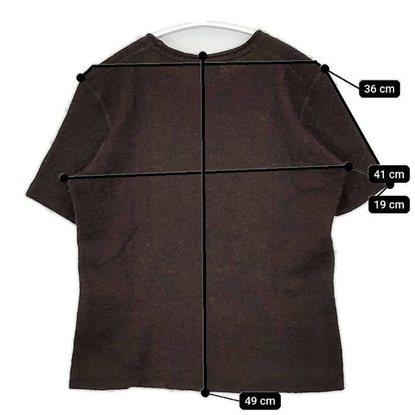 肩幅:約36cm 着丈:約49cm 身幅:約41cm 袖丈:約19cm ※採寸画像がある商品はハンガーに吊るした状態での計測のため、平置きでの採寸とは差が生じる場合がございます。平置きでの実寸サイズをご希望の場合は、ご購入前に必ずご質問ください。