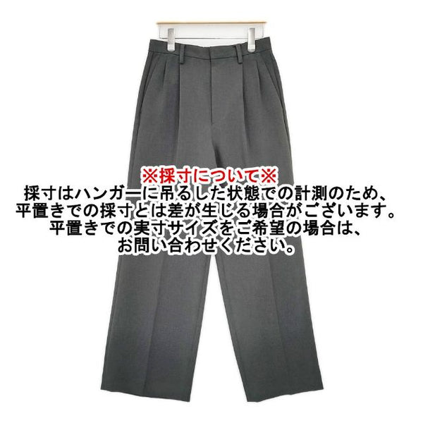 総丈:約105cm ウエスト:約35cm ウエスト最長:約37cm 股上:約35cm 股下:約72cm ヒップ:約44cm ワタリ幅:約29.5cm 裾幅:約25cm ※採寸画像がある商品はハンガーに吊るした状態での計測のため、平置きでの採寸とは差が生じる場合がございます。平置きでの実寸サイズをご希望の場合は、ご購入前に必ずご質問ください。