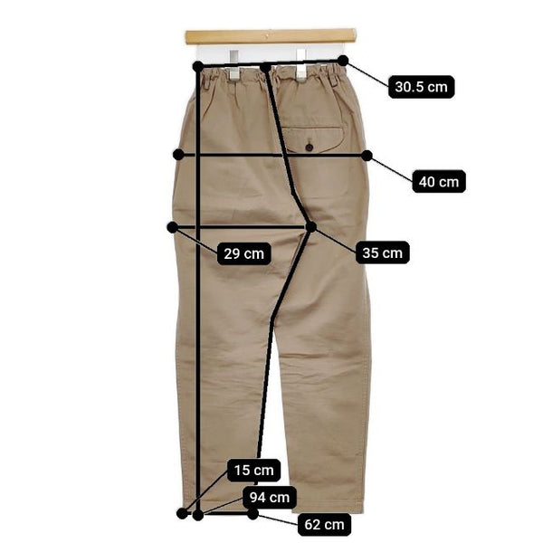 総丈:約94cm ウエスト:約30.5cm ウエスト最長:約40cm 股上:約35cm 股下:約62cm ヒップ:約40cm ワタリ幅:約29cm 裾幅:約15cm ※採寸画像がある商品はハンガーに吊るした状態での計測のため、平置きでの採寸とは差が生じる場合がございます。平置きでの実寸サイズをご希望の場合は、ご購入前に必ずご質問ください。