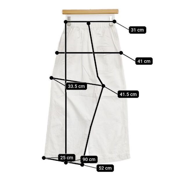 総丈:約90cm ウエスト:約31cm ウエスト最長:約43cm 股上:約41.5cm 股下:約52cm ヒップ:約41cm ワタリ幅:約33.5cm 裾幅:約25cm ※採寸画像がある商品はハンガーに吊るした状態での計測のため、平置きでの採寸とは差が生じる場合がございます。平置きでの実寸サイズをご希望の場合は、ご購入前に必ずご質問ください。