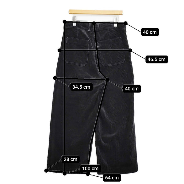 総丈:約100cm ウエスト:約40cm 股上:約40cm 股下:約64cm ヒップ:約46.5cm ワタリ幅:約34.5cm 裾幅:約28cm ※採寸画像がある商品はハンガーに吊るした状態での計測のため、平置きでの採寸とは差が生じる場合がございます。平置きでの実寸サイズをご希望の場合は、ご購入前に必ずご質問ください。