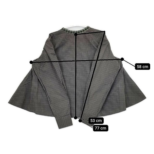 着丈:約53cm 身幅:約58cm 裄丈:約77cm ※採寸画像がある商品はハンガーに吊るした状態での計測のため、平置きでの採寸とは差が生じる場合がございます。平置きでの実寸サイズをご希望の場合は、ご購入前に必ずご質問ください。