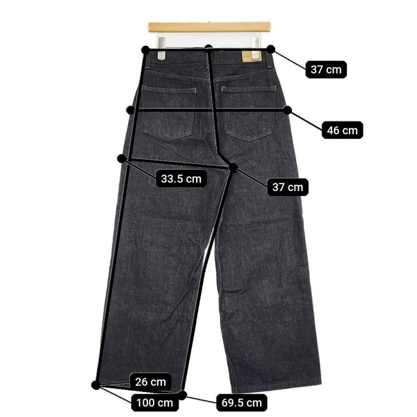 総丈:約100cm ウエスト:約37cm 股上:約37cm 股下:約69.5cm ヒップ:約46cm ワタリ幅:約33.5cm 裾幅:約26cm ※採寸画像がある商品はハンガーに吊るした状態での計測のため、平置きでの採寸とは差が生じる場合がございます。平置きでの実寸サイズをご希望の場合は、ご購入前に必ずご質問ください。