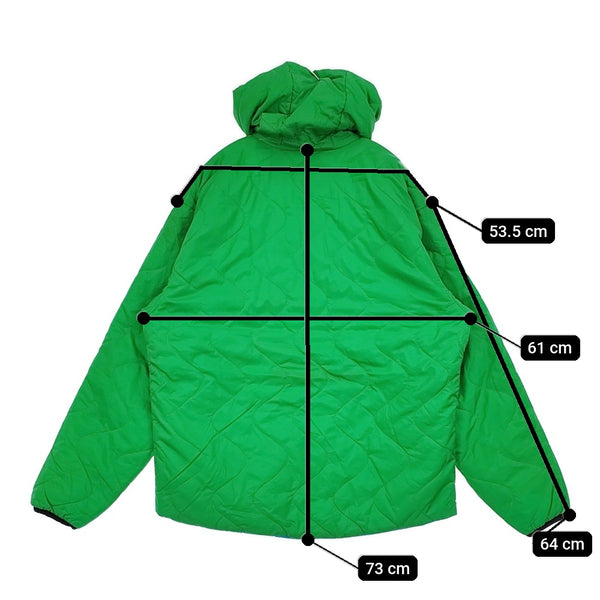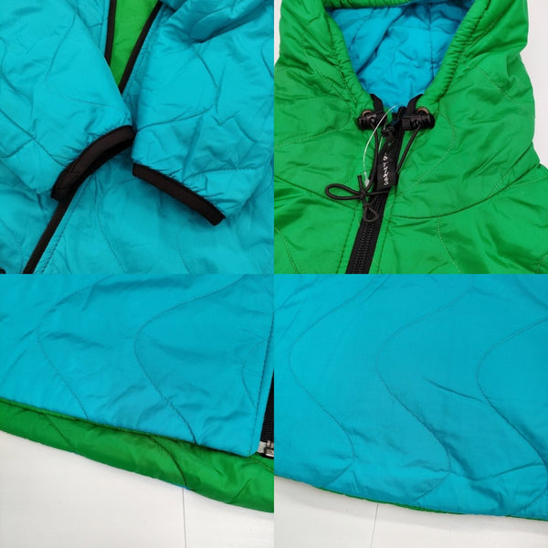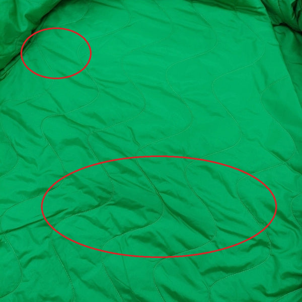 全体に着用感、ところどころに汚れ(光沢のある素材の為写真では確認しにくい/ブルー側胸タグ付近、グリーン側背中の汚れが特に目立ちます)、グリーン側右袖、後ろ裾に糸つりあり。
