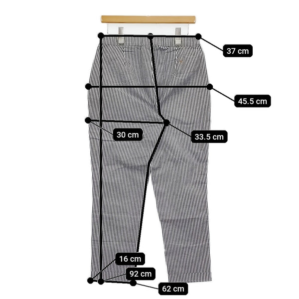 総丈:約92cm ウエスト:約37cm ウエスト最長:約44cm 股上:約33.5cm 股下:約62cm ヒップ:約45.5cm ワタリ幅:約30cm 裾幅:約16cm ※採寸画像がある商品はハンガーに吊るした状態での計測のため、平置きでの採寸とは差が生じる場合がございます。平置きでの実寸サイズをご希望の場合は、ご購入前に必ずご質問ください。