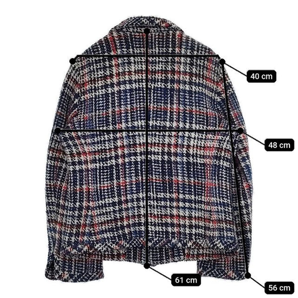 肩幅:約40cm 着丈:約61cm 身幅:約48cm 袖丈:約56cm ※採寸画像がある商品はハンガーに吊るした状態での計測のため、平置きでの採寸とは差が生じる場合がございます。平置きでの実寸サイズをご希望の場合は、ご購入前に必ずご質問ください。