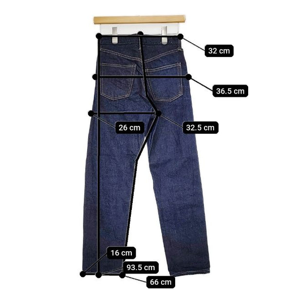 総丈:約93.5cm ウエスト:約32cm 股上:約32.5cm 股下:約66cm ヒップ:約36.5cm ワタリ幅:約26cm 裾幅:約16cm ※採寸画像がある商品はハンガーに吊るした状態での計測のため、平置きでの採寸とは差が生じる場合がございます。平置きでの実寸サイズをご希望の場合は、ご購入前に必ずご質問ください。