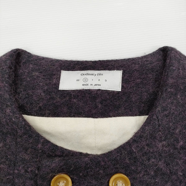 コート ダブルボタン 七分袖 サイズ0 ノーカラー ウール |