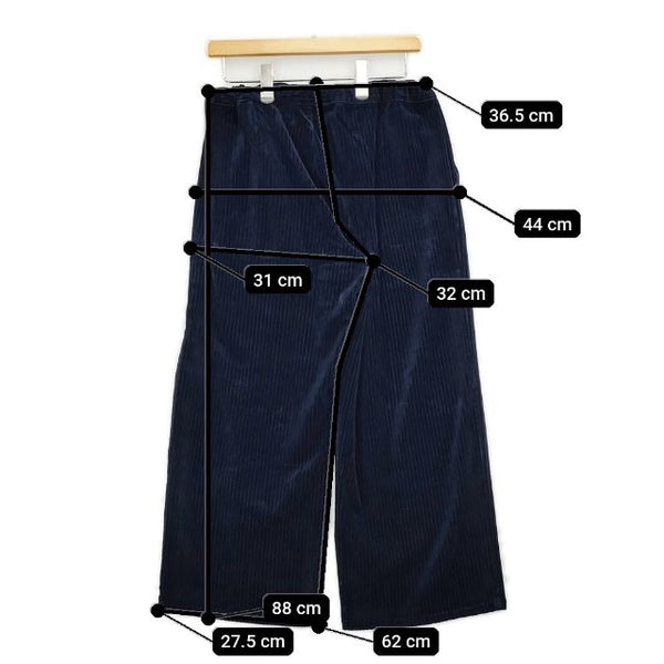 総丈:約88cm ウエスト:約36.5cm ウエスト最長:約50cm 股上:約32cm 股下:約62cm ヒップ:約44cm ワタリ幅:約31cm 裾幅:約27.5cm ※採寸画像がある商品はハンガーに吊るした状態での計測のため、平置きでの採寸とは差が生じる場合がございます。平置きでの実寸サイズをご希望の場合は、ご購入前に必ずご質問ください。