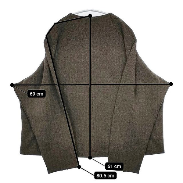 着丈:約61cm 身幅:約69cm 裄丈:約80.5cm ※採寸画像がある商品はハンガーに吊るした状態での計測のため、平置きでの採寸とは差が生じる場合がございます。平置きでの実寸サイズをご希望の場合は、ご購入前に必ずご質問ください。