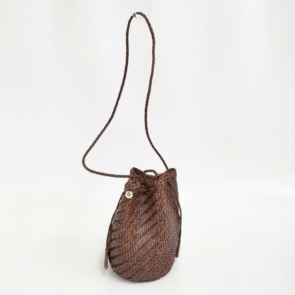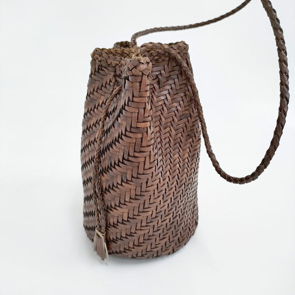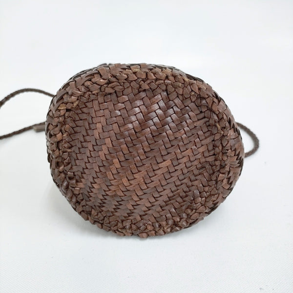 ショルダーバッグ レザーメッシュ巾着 かごバッグ 革 編み込み |