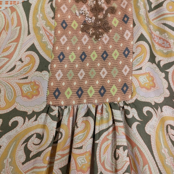 ワンピース ペイズリー スパンコール シルク イタリア製 サイズ42 スクエアネック |