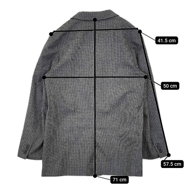 肩幅:約41.5cm 着丈:約71cm 身幅:約50cm 袖丈:約57.5cm ※採寸画像がある商品はハンガーに吊るした状態での計測のため、平置きでの採寸とは差が生じる場合がございます。平置きでの実寸サイズをご希望の場合は、ご購入前に必ずご質問ください。