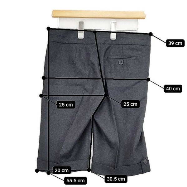 総丈:約55.5cm ウエスト:約39cm 股上:約25cm 股下:約30.5cm ヒップ:約40cm ワタリ幅:約25cm 裾幅:約20cm ※採寸画像がある商品はハンガーに吊るした状態での計測のため、平置きでの採寸とは差が生じる場合がございます。平置きでの実寸サイズをご希望の場合は、ご購入前に必ずご質問ください。