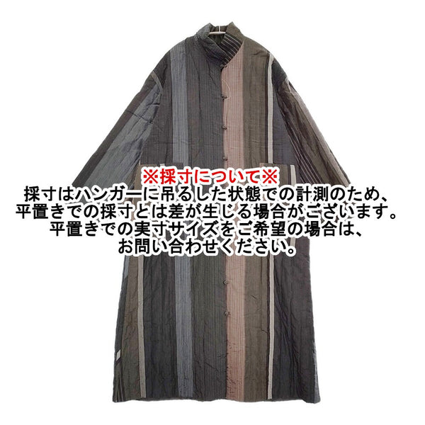 コート チャイナボタン リバーシブル コットンシルクロングコート ストライプキルト |