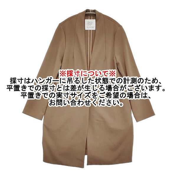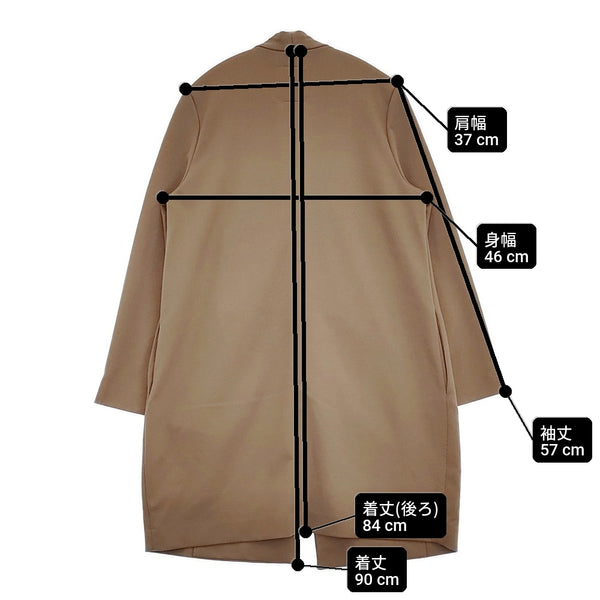 肩幅:約37cm 着丈:約90cm 着丈(後ろ):約84cm 身幅:約46cm 袖丈:約57cm ※採寸画像がある商品はハンガーに吊るした状態での計測のため、平置きでの採寸とは差が生じる場合がございます。平置きでの実寸サイズをご希望の場合は、ご購入前に必ずご質問ください。