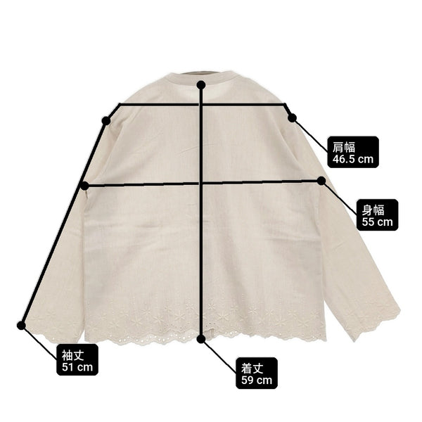 ブラウス シャツ 新品 スカラップ 刺繍 73354 サイズM コットンウール |