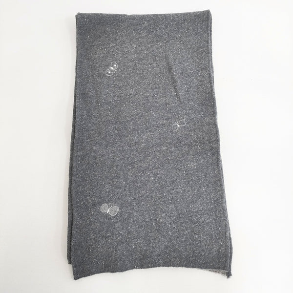 mina perhonen choucho 刺繍 マフラー ストール グレー レディース ミナペルホネン【中古】6-0122T◎
