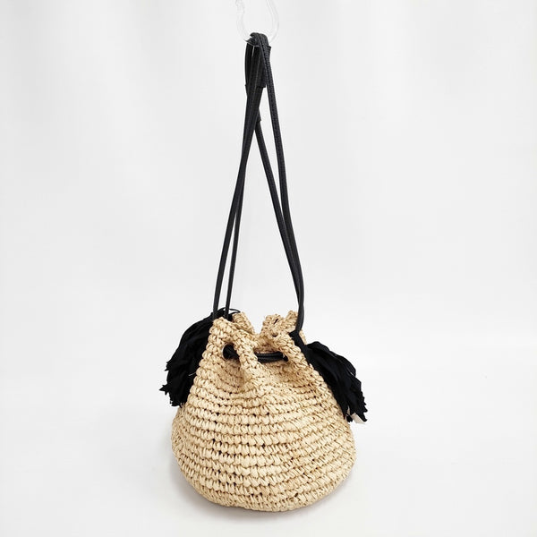 かごバッグ 未使用 タッセル ラフィア かご 巾着 |
