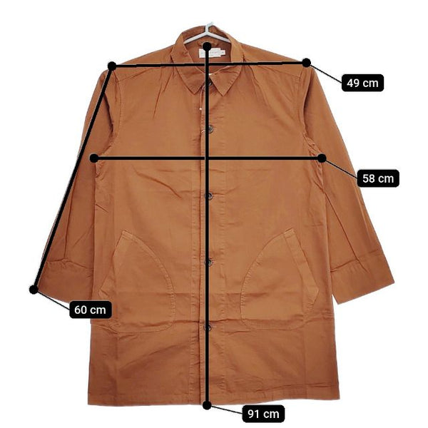 肩幅:約49cm 着丈:約91cm 身幅:約58cm 袖丈:約60cm ※採寸画像がある商品はハンガーに吊るした状態での計測のため、平置きでの採寸とは差が生じる場合がございます。平置きでの実寸サイズをご希望の場合は、ご購入前に必ずご質問ください。