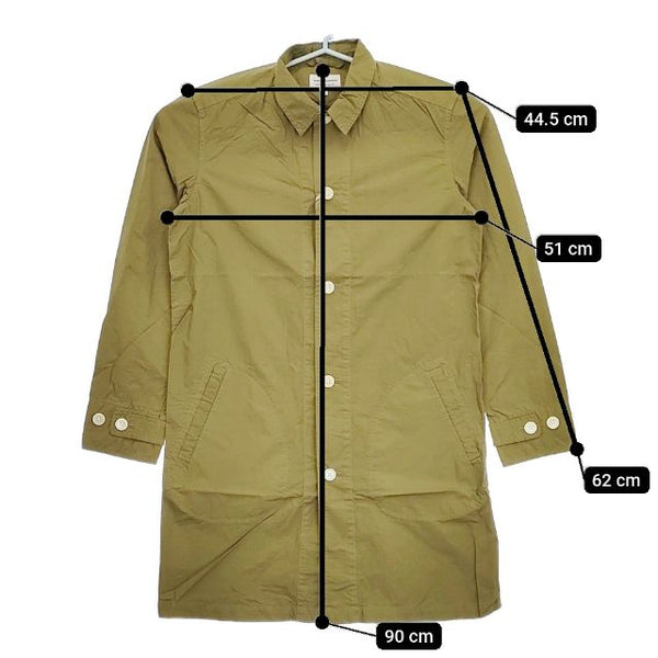 肩幅:約44.5cm 着丈:約90cm 身幅:約51cm 袖丈:約62cm ※採寸画像がある商品はハンガーに吊るした状態での計測のため、平置きでの採寸とは差が生じる場合がございます。平置きでの実寸サイズをご希望の場合は、ご購入前に必ずご質問ください。