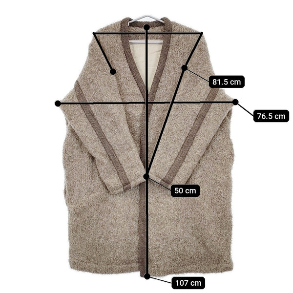 肩幅:約81.5cm 着丈:約107cm 身幅:約76.5cm 袖丈:約50cm ※採寸画像がある商品はハンガーに吊るした状態での計測のため、平置きでの採寸とは差が生じる場合がございます。平置きでの実寸サイズをご希望の場合は、ご購入前に必ずご質問ください。