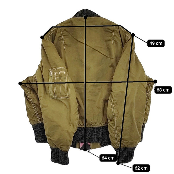 肩幅:約49cm 着丈:約64cm 身幅:約68cm 袖丈:約62cm ※採寸画像がある商品はハンガーに吊るした状態での計測のため、平置きでの採寸とは差が生じる場合がございます。平置きでの実寸サイズをご希望の場合は、ご購入前に必ずご質問ください。