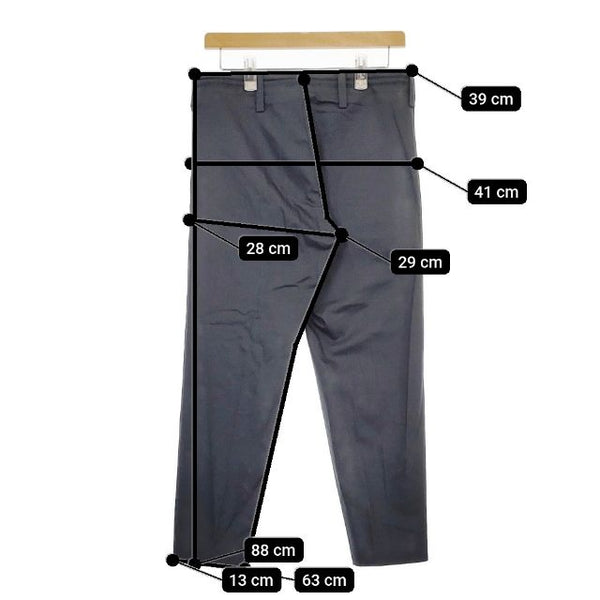 総丈:約88cm ウエスト:約39cm 股上:約29cm 股下:約63cm ヒップ:約41cm ワタリ幅:約28cm 裾幅:約13cm ※採寸画像がある商品はハンガーに吊るした状態での計測のため、平置きでの採寸とは差が生じる場合がございます。平置きでの実寸サイズをご希望の場合は、ご購入前に必ずご質問ください。